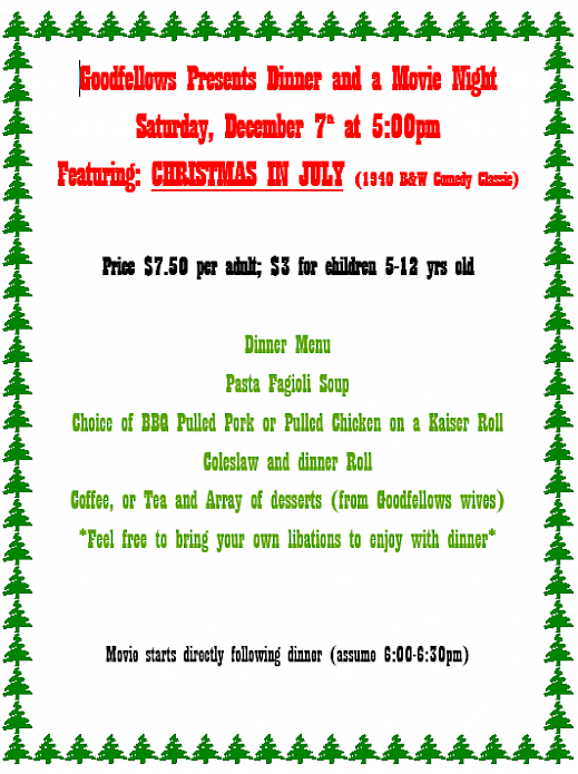 Goodfellows Dinner and a Movie Night