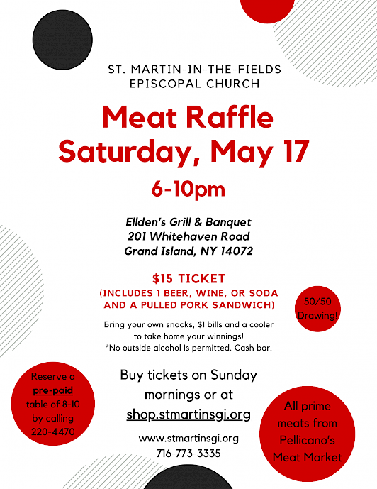 Join us for a Meat Raffle on Saturday, May 17 at Ellden’s Grill & Banquet from 6pm-10pm!