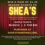 We are raffling off season tickets to Shea’s 24-25 season! Raffle tickets are $5 each or 5 for $20. The tickets for the seven shows are center stage, including the opening night performance! Please see Allie or Dave Porter for tickets or buy them on shop.stmartinsgi.org. The winner will be drawn at the Chicken BBQ on July 13 and does not need to be present. Thank you for your support! *Please